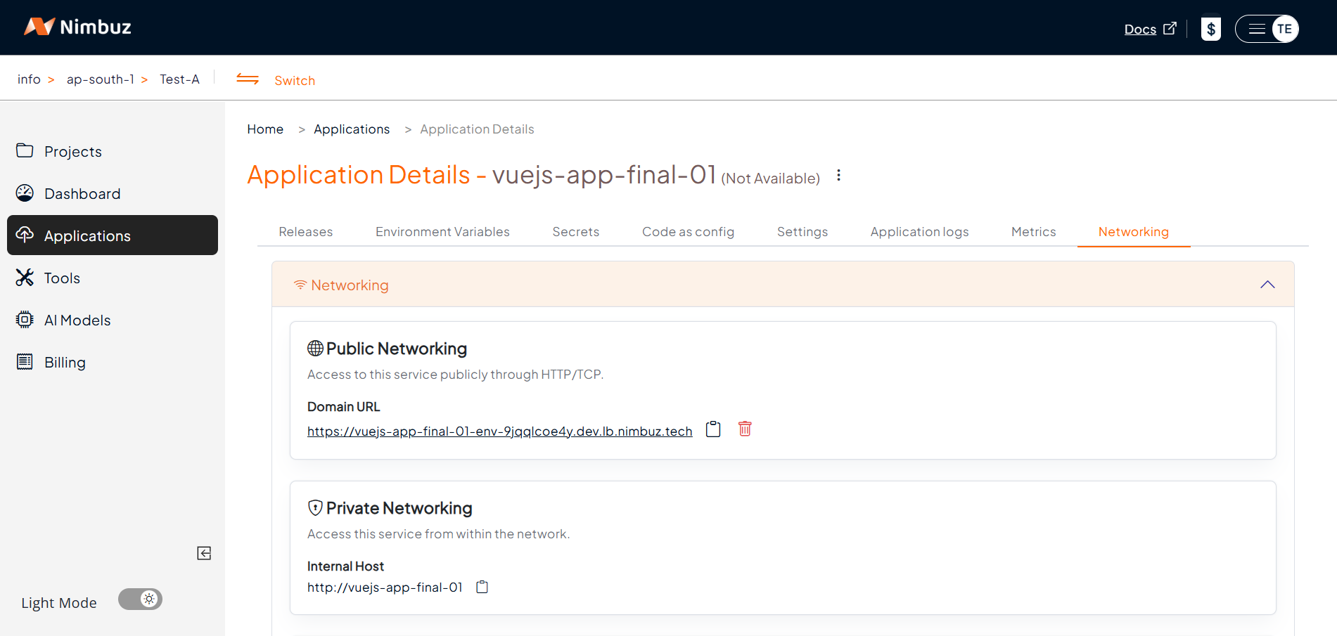 With just a few clicks in the Networking tab, Nimbuz allows you to quickly secure your application using Basic Authentication. It's a simple and effective way to control access, especially during development and testing phases.