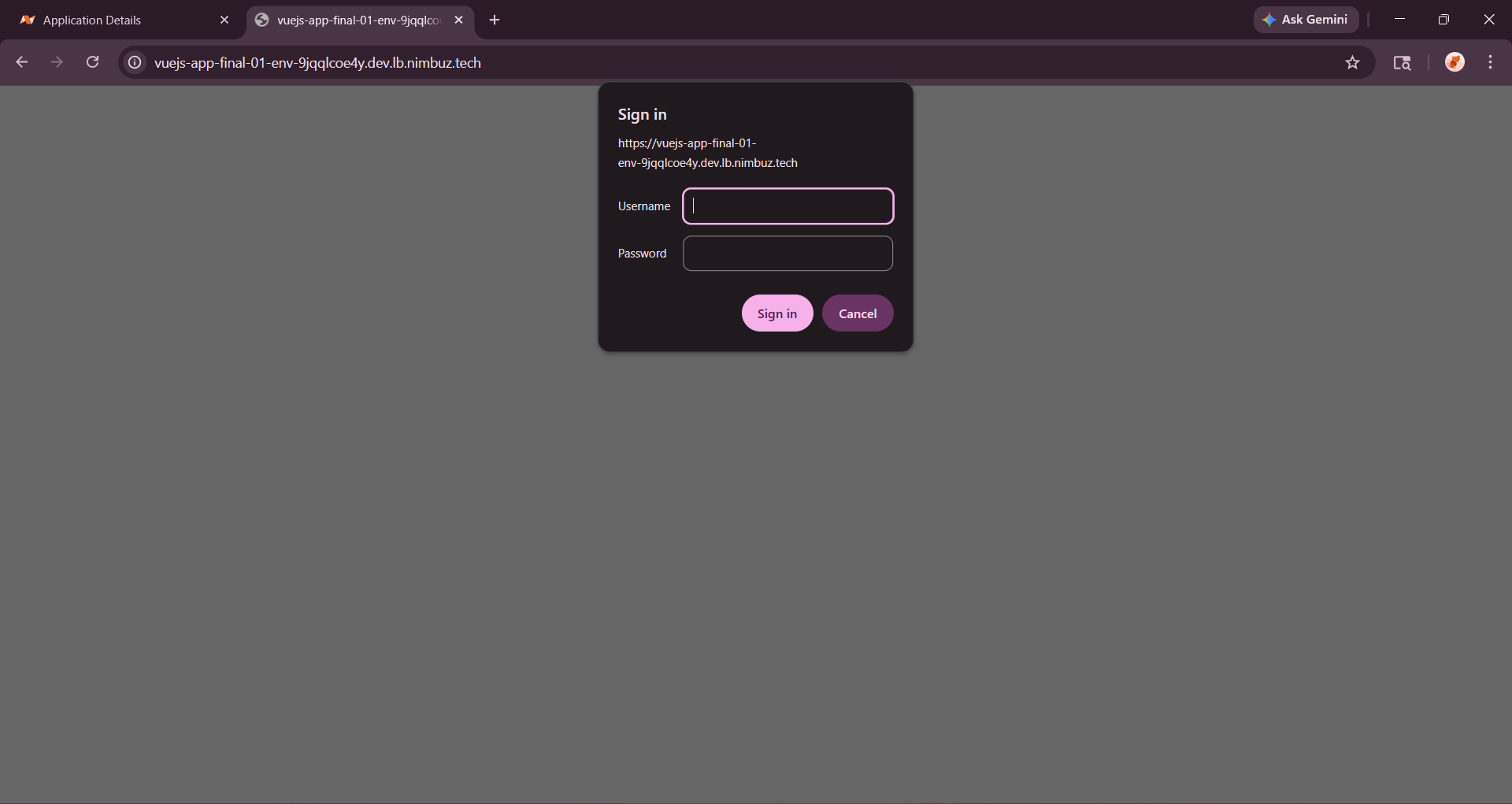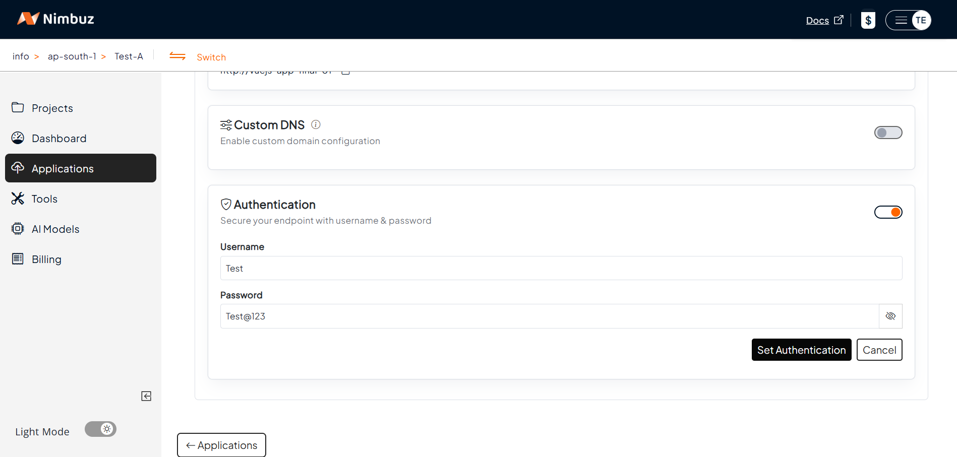 Nimbuz makes it easy to secure your application endpoints using Basic Authentication. This feature allows you to protect your application with a simple username and password before granting access.