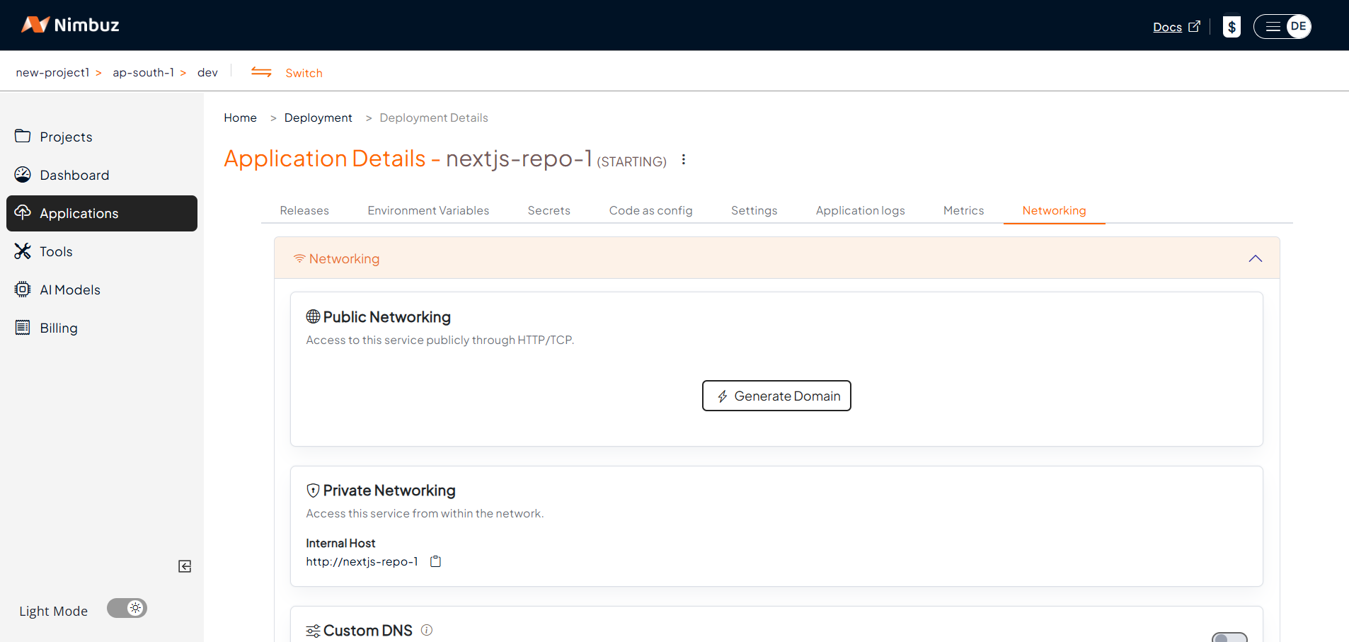 - Go to the Networking tab → Click Generate Domain.