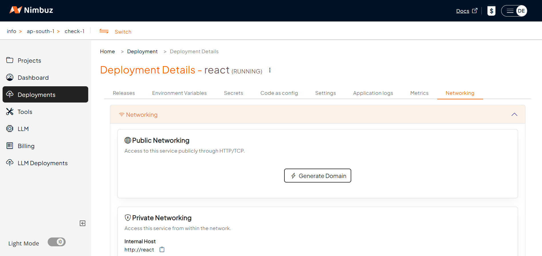 - Go to the Networking tab → Click Generate Domain.