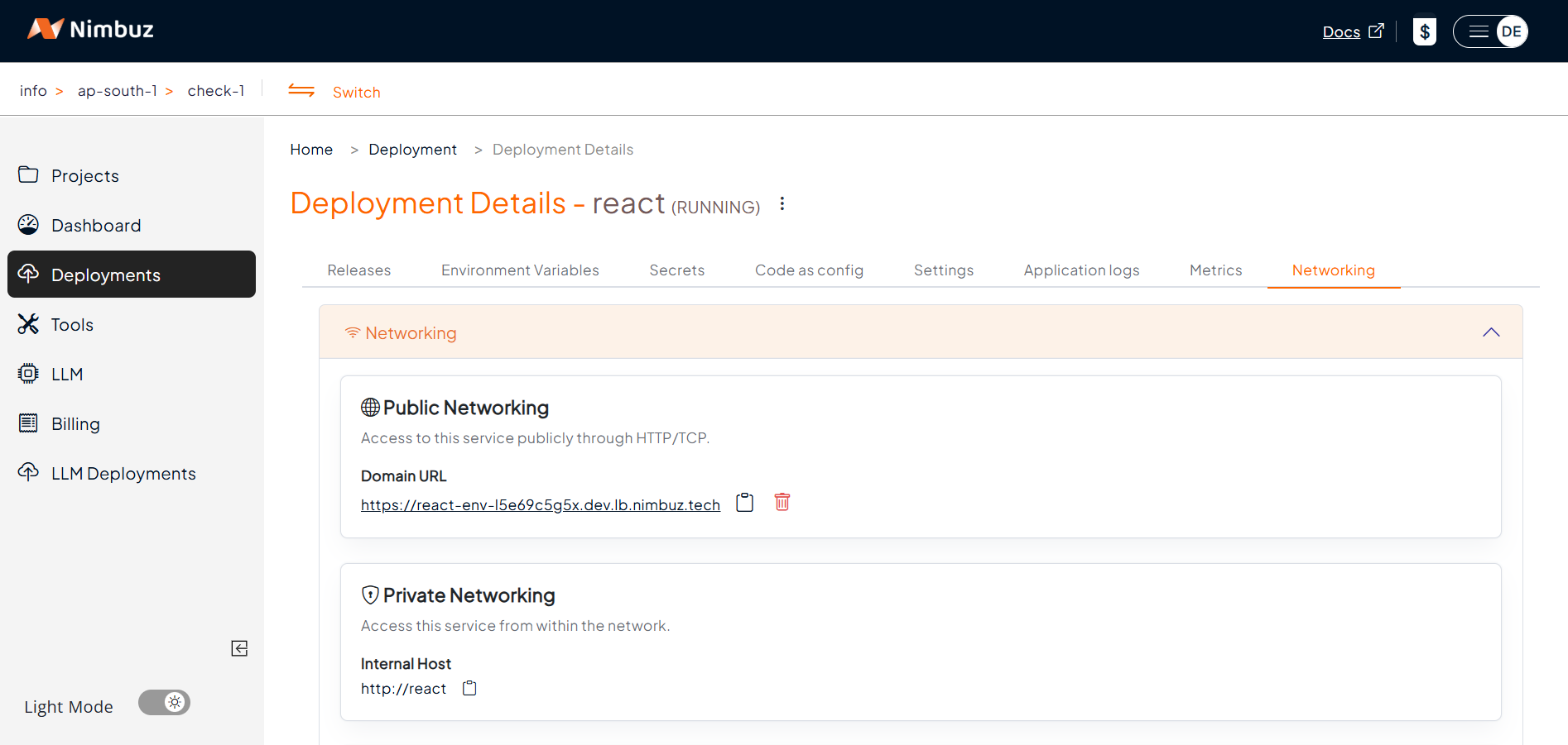 http://<app-name>.nimbuz.tech or custom domain |