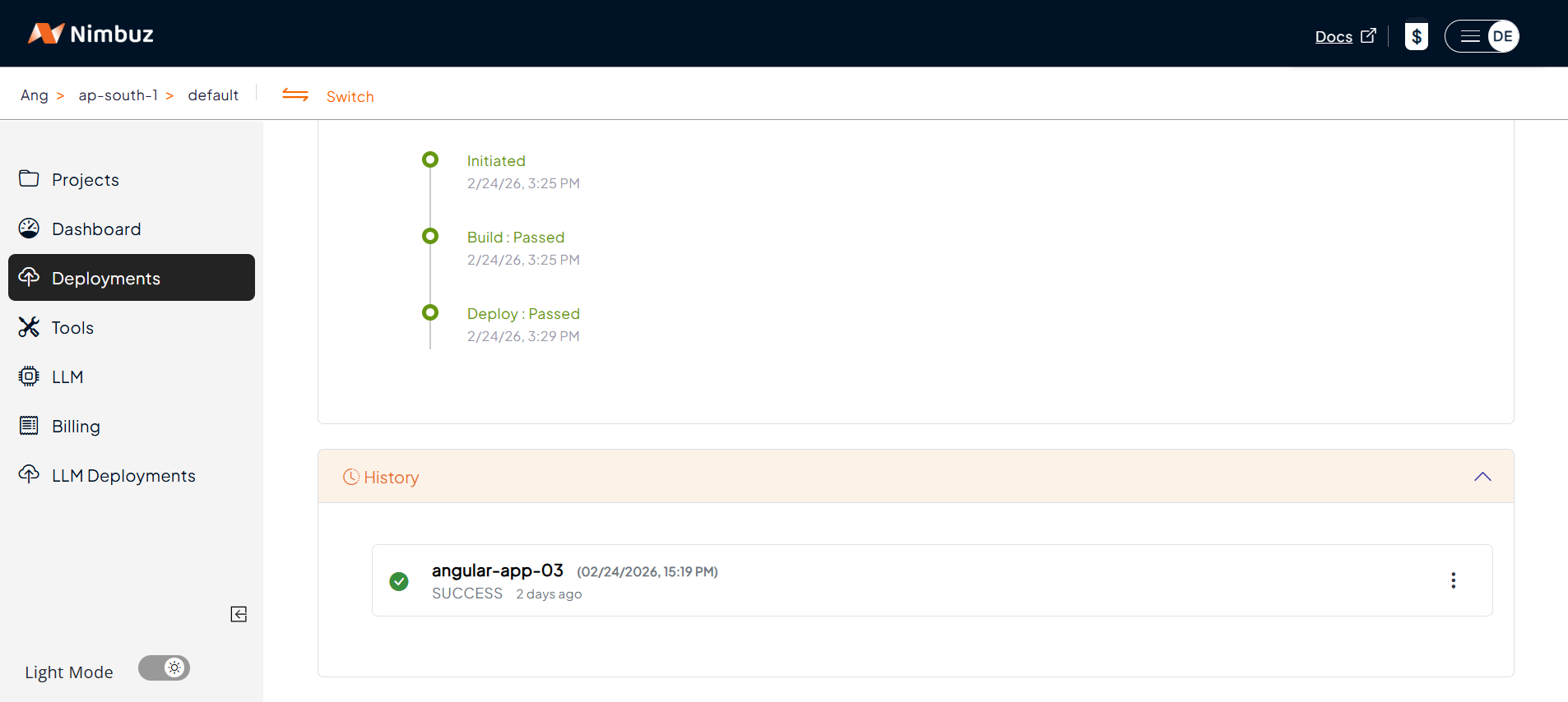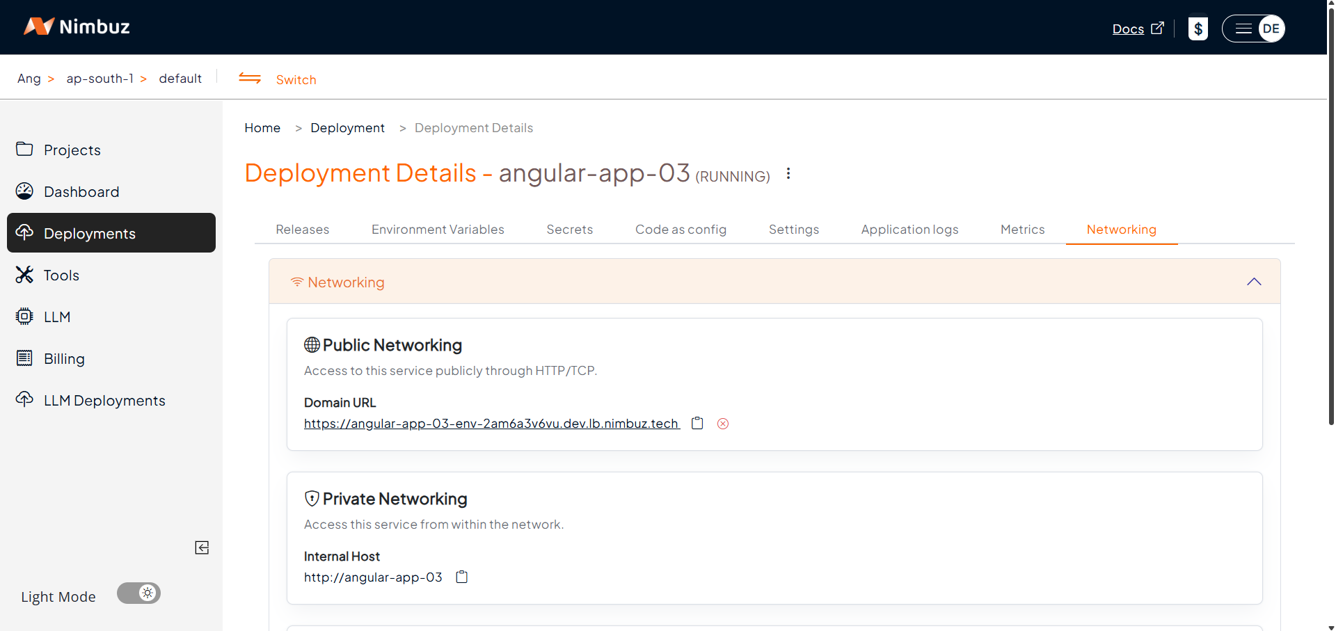 Deploying your Angular application has never been easier with a fully UI driven experience. No terminal commands, no server setup, and no complex configurations. Just click, deploy and go live.